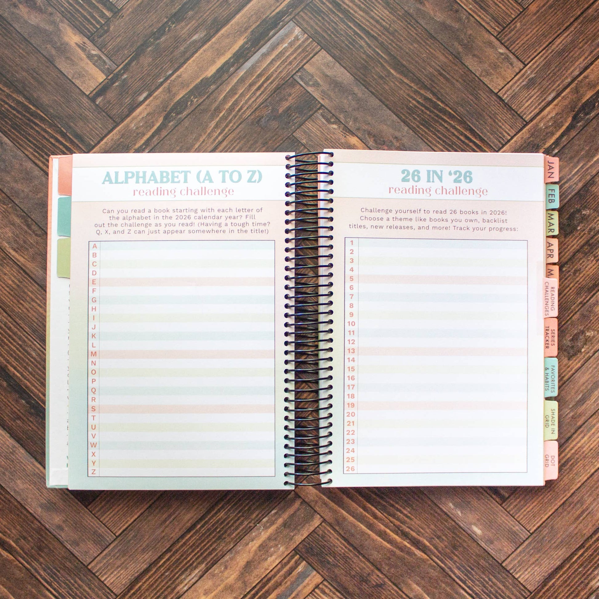 - 6″ x 9″ spiral bound Reading Tracker designed to help readers jot down the statistics, favorites, and summaries about their reads. (NOT a planner or review book)