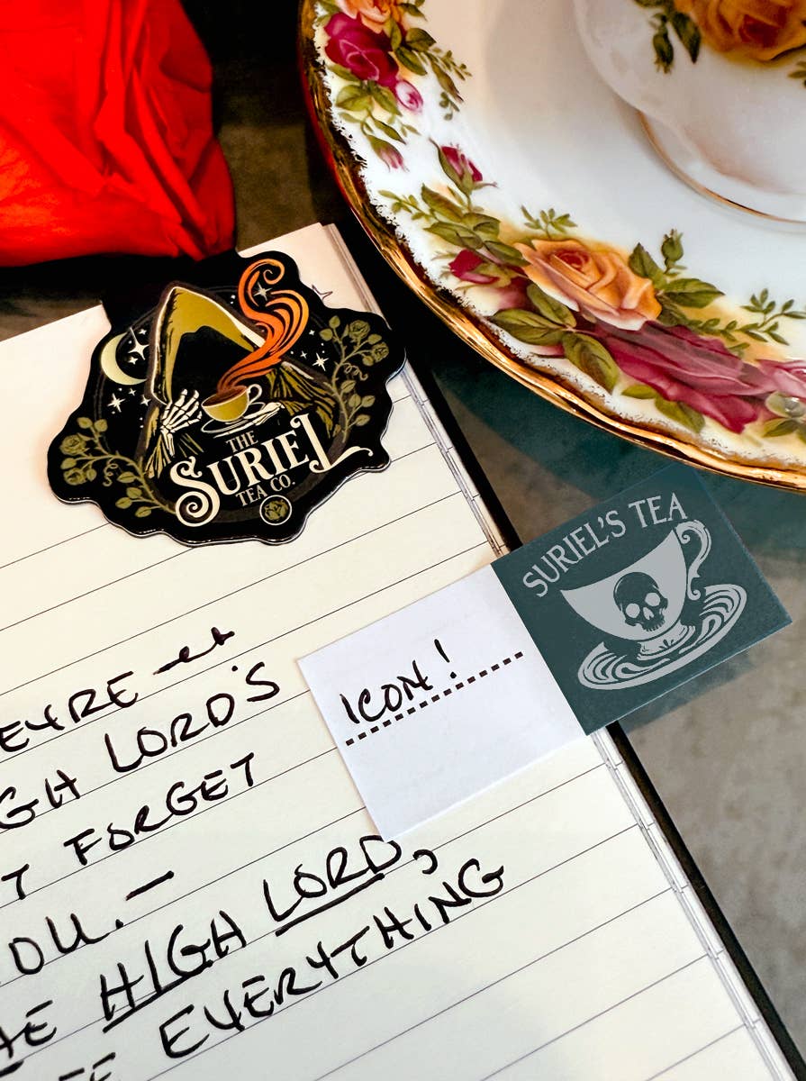Love the look of book annotations but hate the work? We've got you! Our Officially Licensed A Court of Thorns and Roses Book Annotation Flags are pre-printed with notes we know you want to remember! Easily mark when the Suriel is giving all the tea, when the Bat Boys are being, well... boys. Those "WHAT?" moments exclaim "Cauldron Boil Me", and of course, when those mountains shook! Each set includes 30 sticky book tabs, each perfectly sized for annotating your favorite passages. With clever nods and designs that capture the heart of the book series, these annotation tabs are a must-have book accessory for every ACOTAR reader's collection. Product Details: - Set of 9 different ACOTAR-themed annotation flags - Includes 30 sticky tabs per pad - Pre-printed with iconic themes from the series - Perfect for tracking scenes, spice & the tea - Officially Licensed Sarah J. Maas: A Court of Thorns and Roses Products - Tab Dimensions (H x W): 1'' x 2'' Officially Licensed: ©2017, Sarah J. Maas.