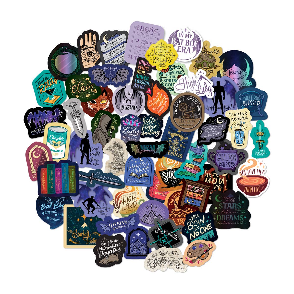 Featuring Rhysand, Feyre, Cassian, Nesta, and even the Suriel (yes, the tea is piping), this ACOTAR sticker set is packed with spicy moments, subtle shade, and inside jokes only true Sarah J. Maas fans will catch. Our decals are waterproof, scratch-proof, and UV-resistant – because your emotional damage should last... and so should your stickers.