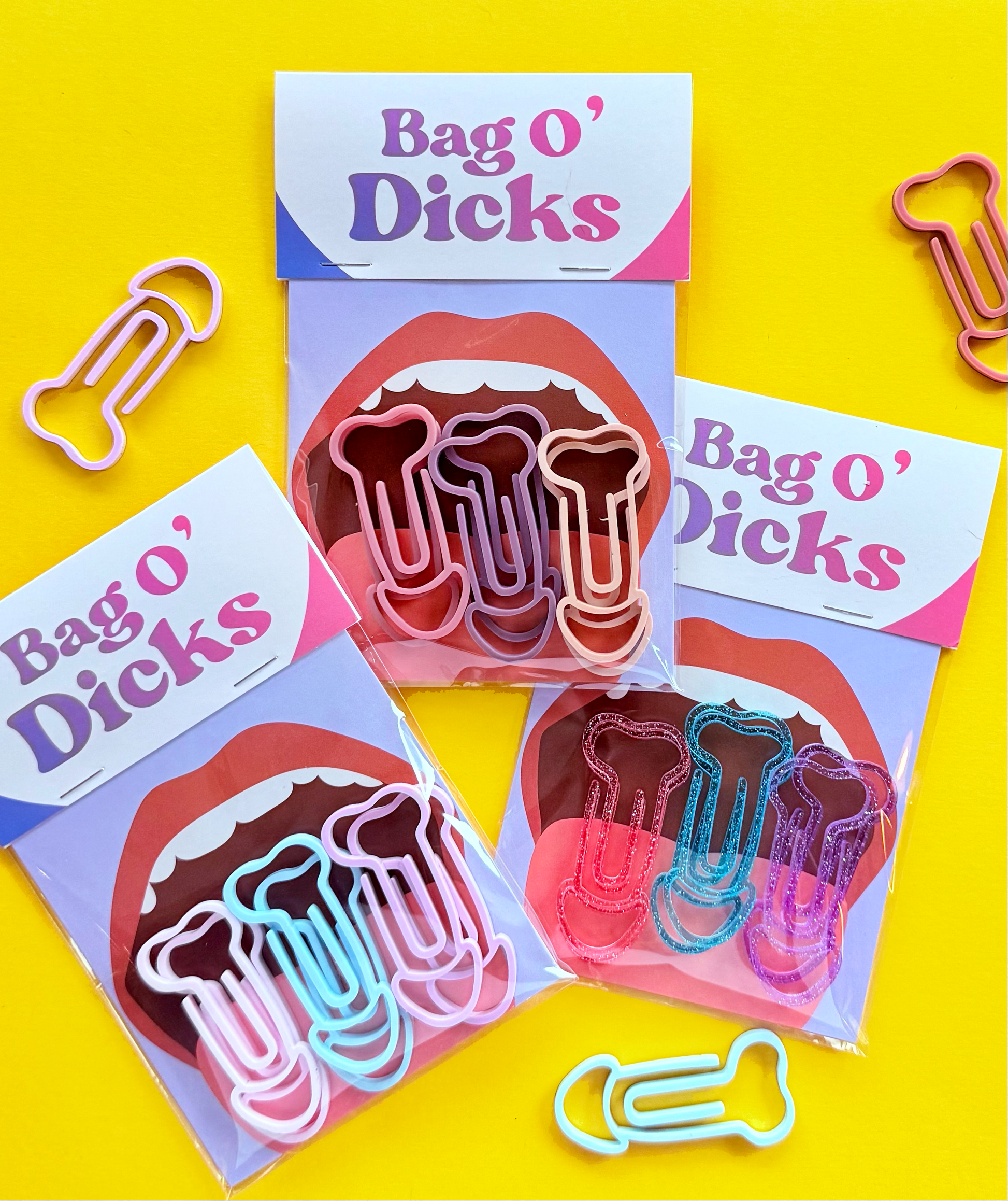 We took our poplar Cockclip™, shrunk it down to a bite-sized 2", sprinkled six in a bag and made Bag O' Dicks! Perfect stocking stuffer, gift for your work besties, as an anonymous gift for your beloved boss, or an excuse to finally organize some of those papers on your desk! Enjoy these in three different color varieties! Taste the rainbow.