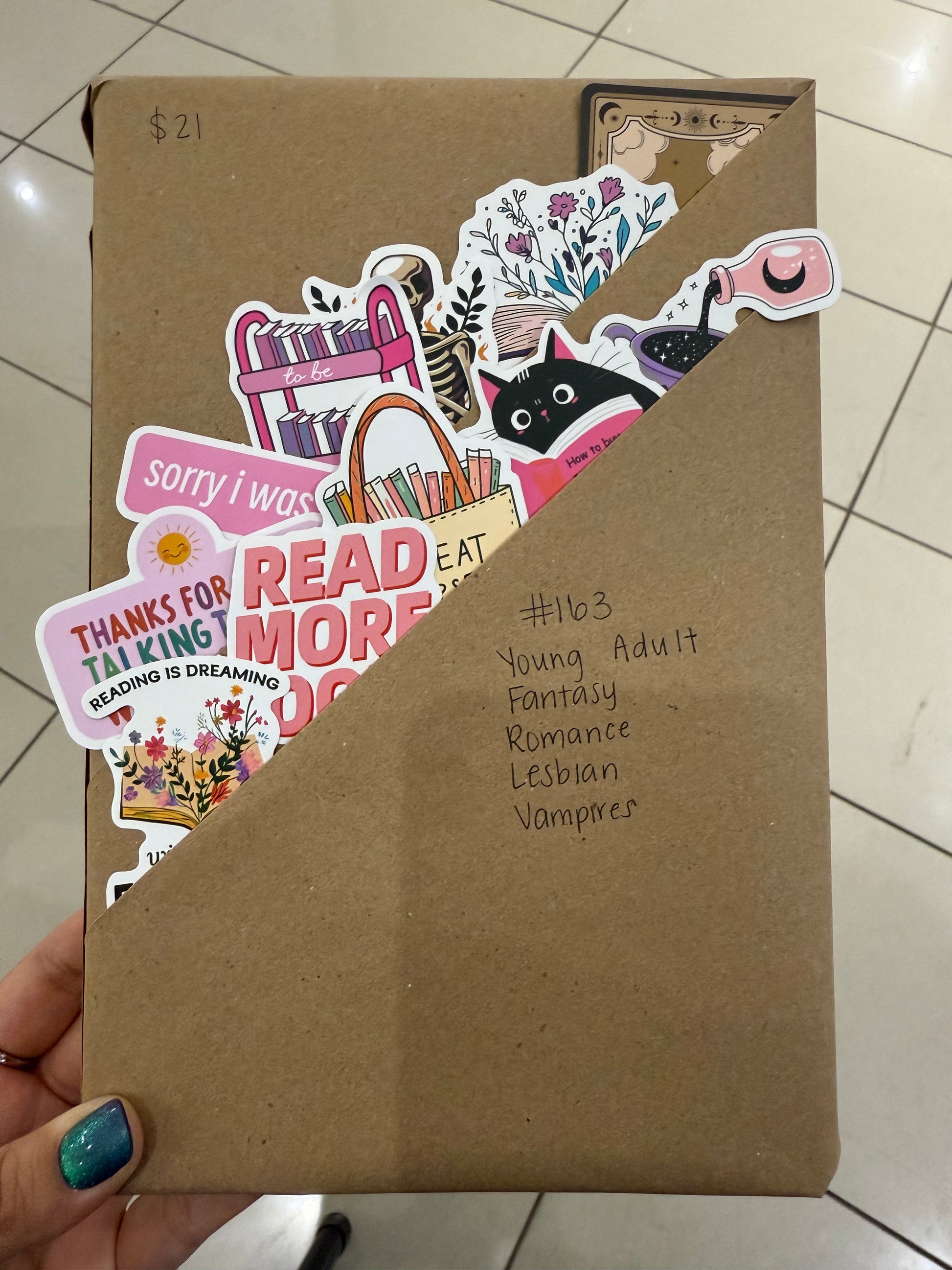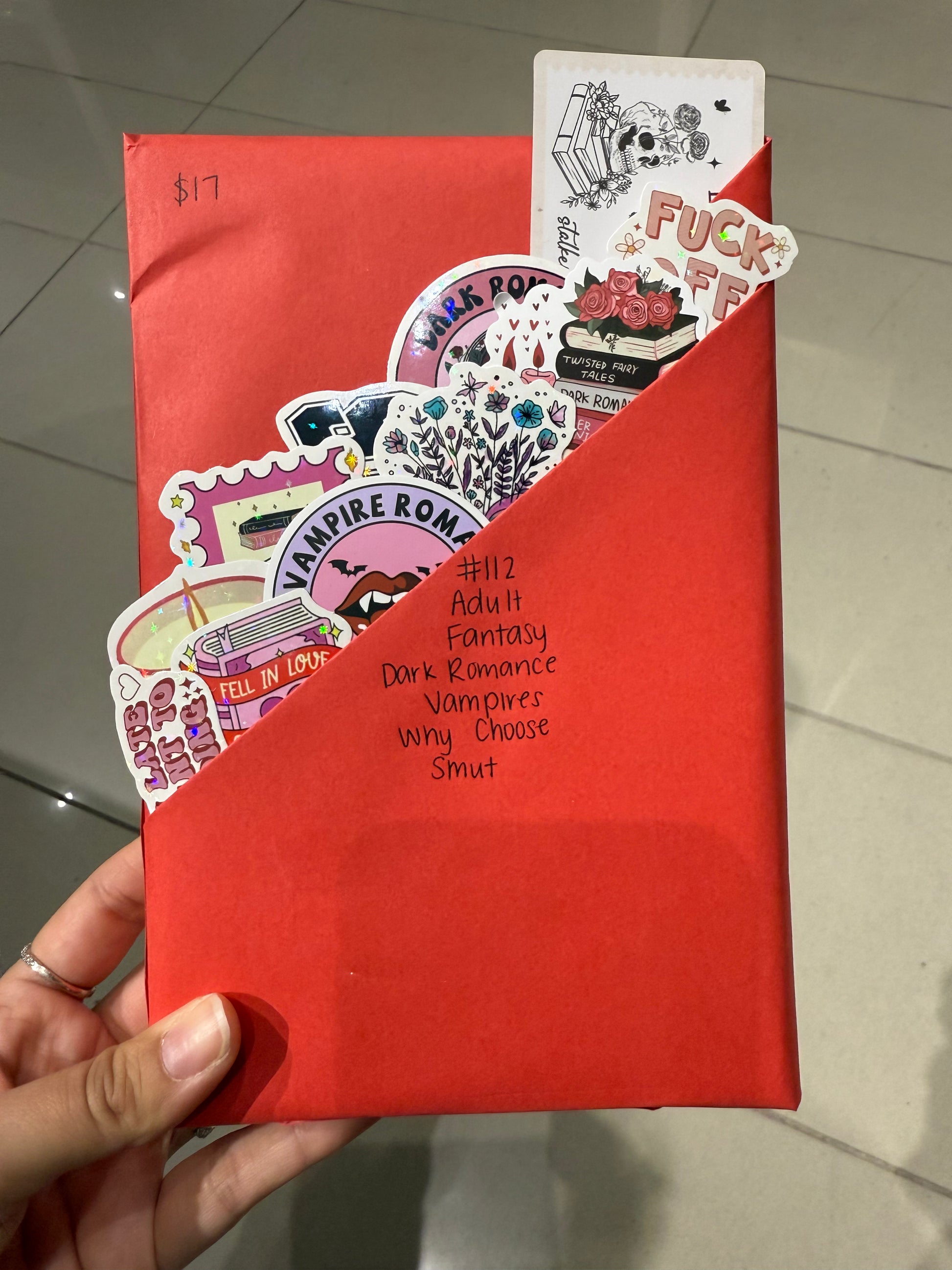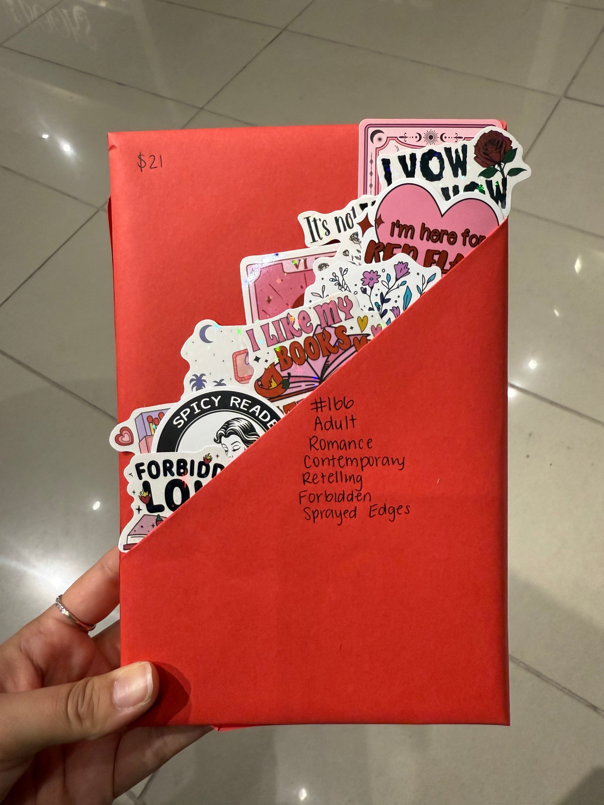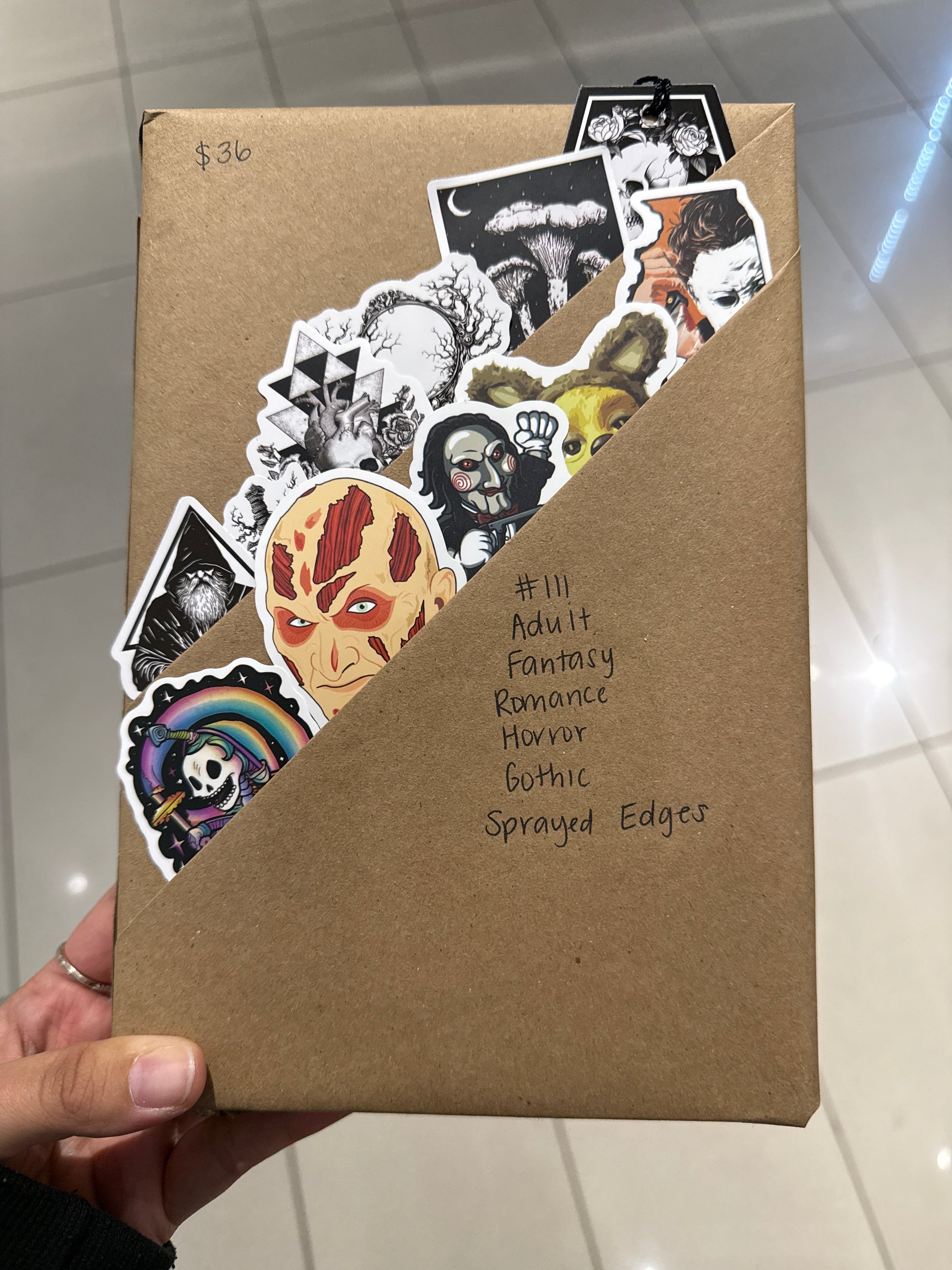 The color of paper used to wrap your book and any extra decorations we add to the wrapping like washi tape and ribbon are always random and subject to what we have on hand to use.