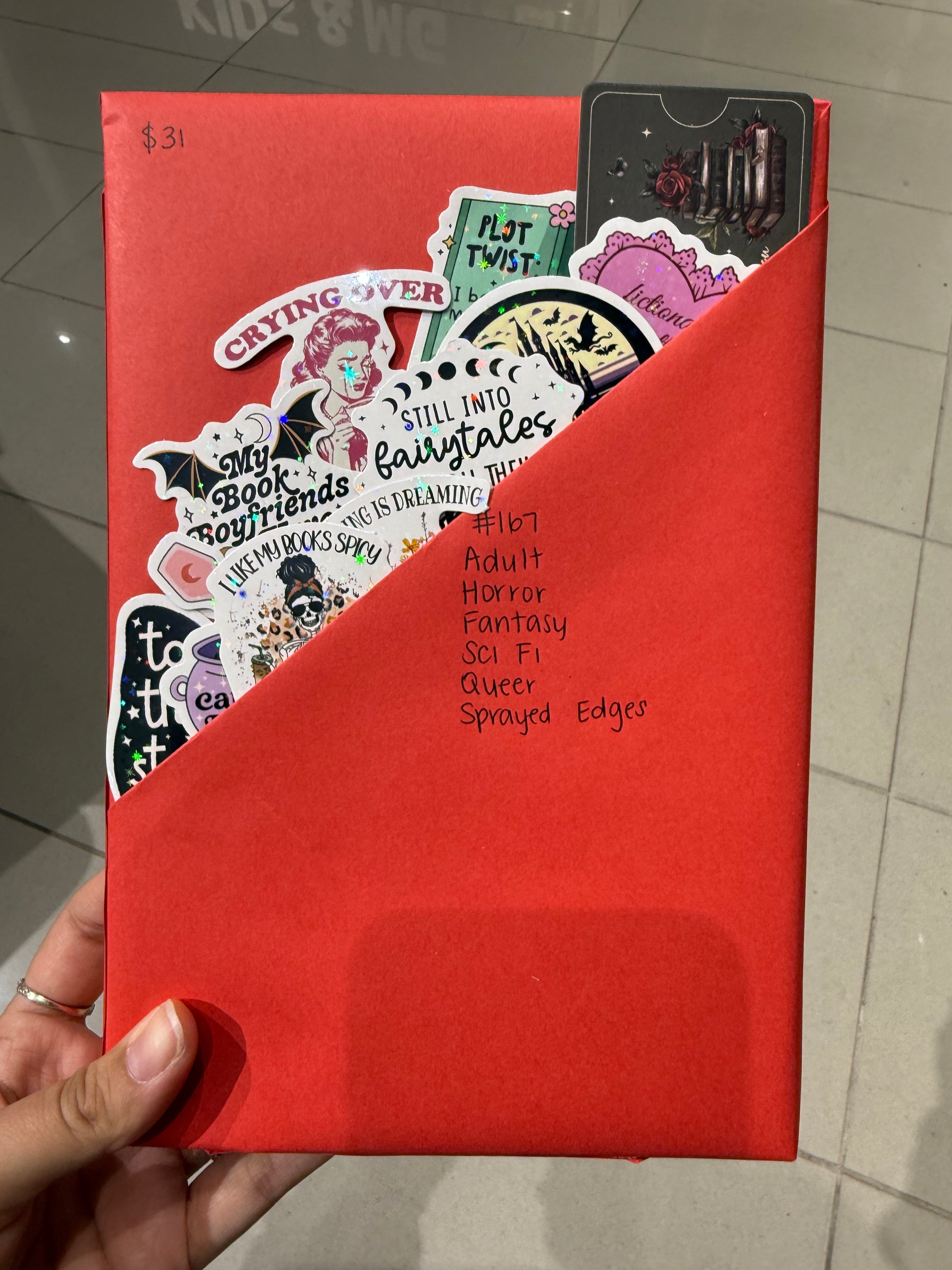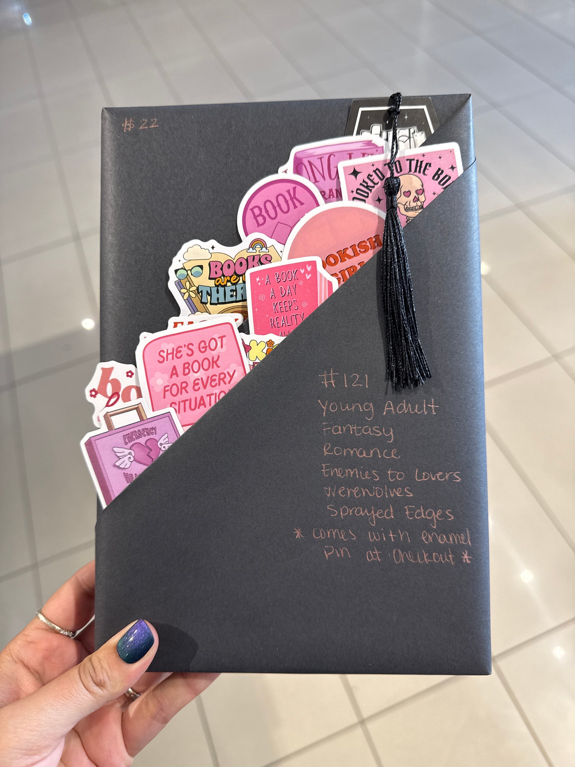 Each book comes wrapped. Each number purchased comes with a bookmark and an assortment of stickers.