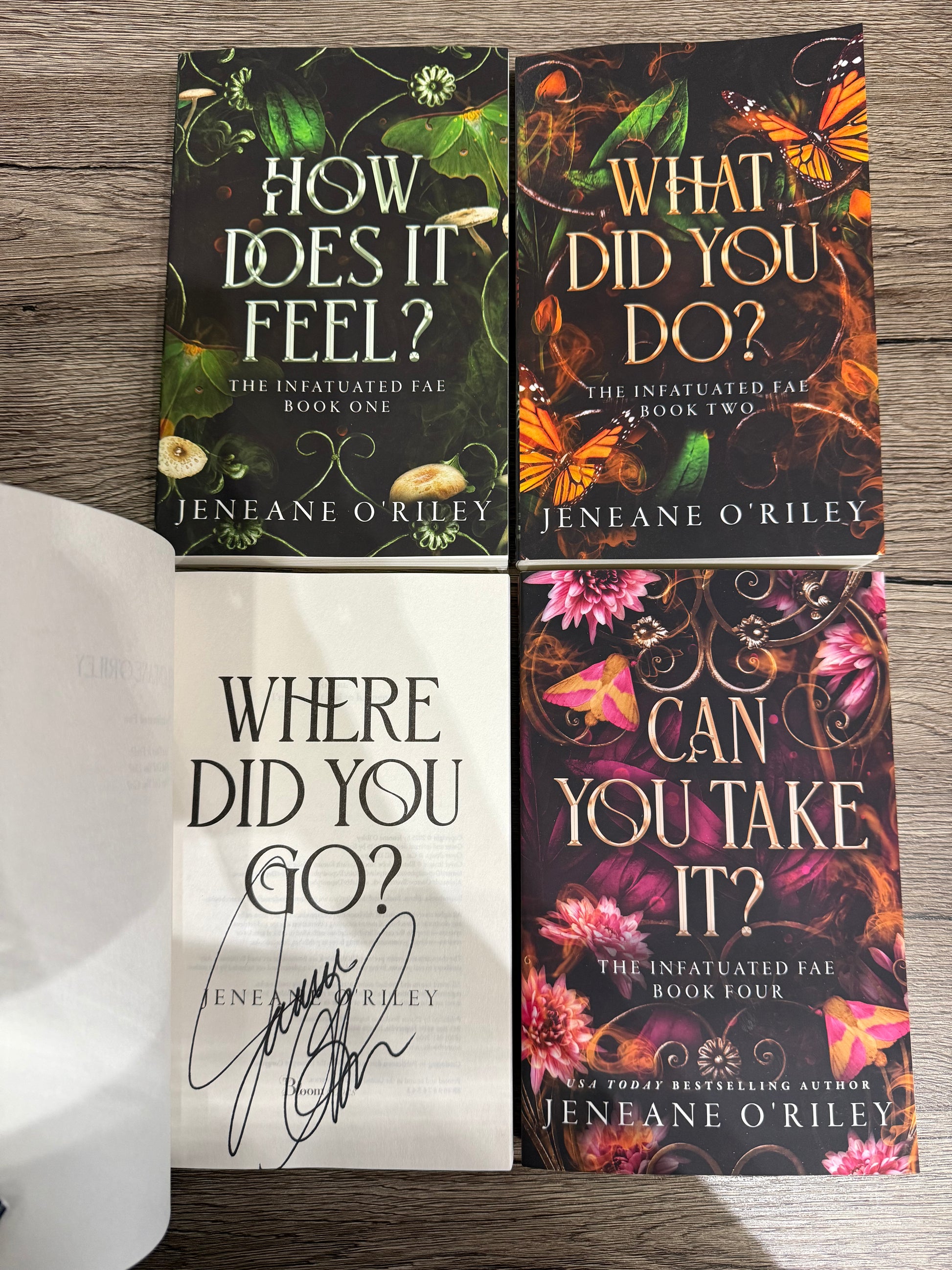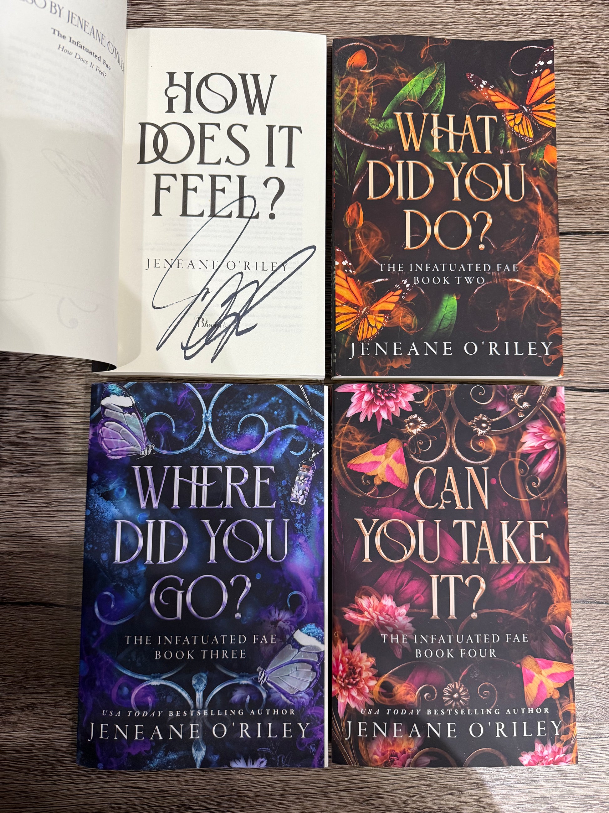 Paperbacks of the 4 Infatuated Fae books by Jeneane O'Riley, all hand signed.